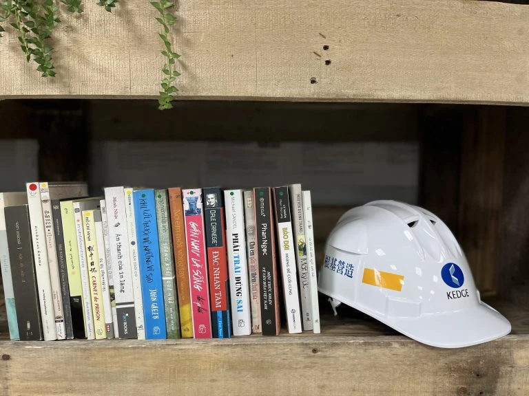 據調查,根基營造有271位東南亞籍移工,占全體員工的三分之一,是工程執行的主力。在工作方面,將公司政策和勞安警語翻譯成多國語言,考量到移工的日常生活多半集中在宿舍,除了提供住宿和供餐外,還思考如何為他們的身心帶來樂趣與安慰,因而推出了共享閱讀方案。